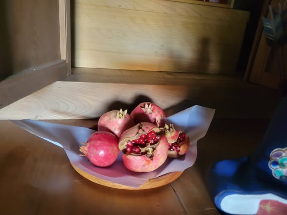 実りの秋、番神堂の鬼子母神さまには、境内のザクロをお供えします。